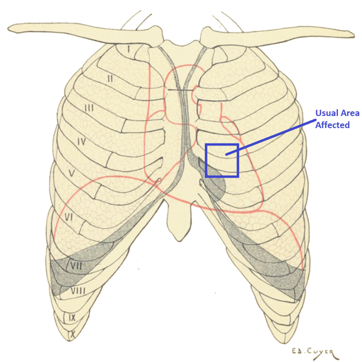 The way it always felt to me is like someone wrapped a small wire around something tender in my chest, and if I tried to breathe or straighten my posture, they would yank on it. I’d get it anywhere from a couple times a week to once a month. Then one day in my mid-30s it just stopped.