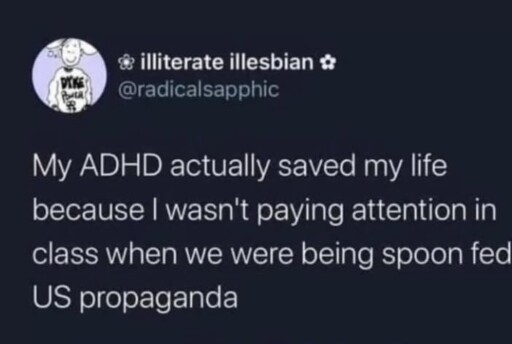 it’s literal brainwashing. Americans laugh at the NK people having to praise Dear Daddy, but then every morning in school, they cite the pledge of allegiance. Why would you want to be allied with one of the worst countries in modern history? Fuck that.