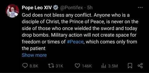 To be completely honest though I commented on the tweet, then saw the title after posting it. They actually were threatening Vatican with a military action. This is apparently why Pope postponed 2026 visit to US. Insane.