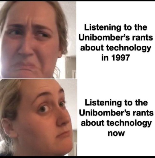 Haven’t read unobomber’s manifesto and probably never will because fuck anyone who seeks attention this way.